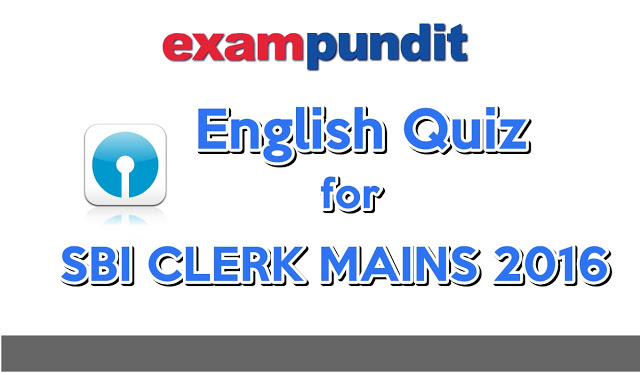 Hello and welcome to exampundit . Here is a set of English Quiz for the upcoming SBI Clerk(Junior Associates) Mains 2016.