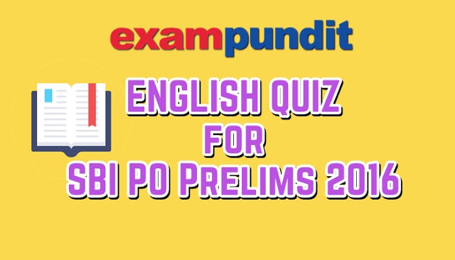 Hello and welcome to exampundit. Here is a set of English Quiz for the upcoming SBI PO Prelims 2016.