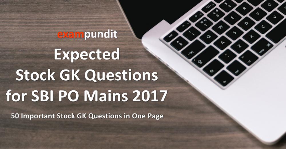 Hello and welcome to exampundit. Here are 50 Important Expected Stock GK Questions for SBI PO Mains 2017.