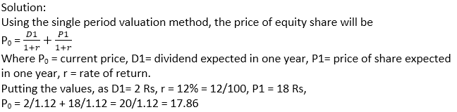 to provide a dividend of Rs. 2.00 and fetch a price of Rs. 18 after one year.