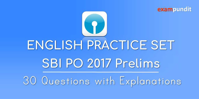 Hello and welcome to exampundit. Here is a full set of English Language section for SBI PO Prelims 2017.