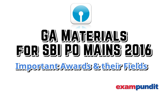 Hello and welcome to exampundit . As a Part of our group study initiative for SBI PO Mains General Awareness, Sourav was given Important Awards & their Fields as topic.