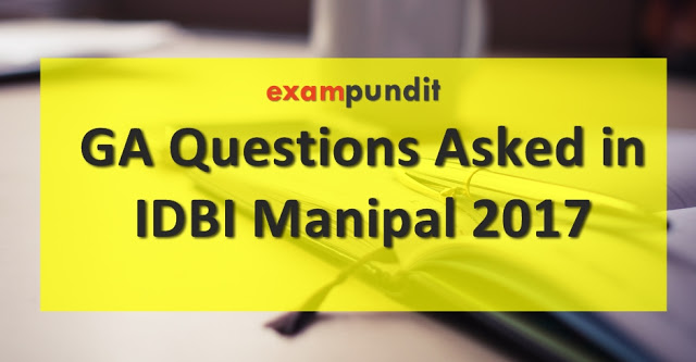 Hello and welcome to exampundit. Here are the GA Questions Asked in IDBI Manipal 3 February, 2017. A big thanks to Shashank!