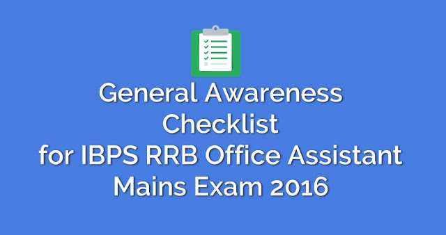 Hello and welcome to exampundit . So as per Soha's request, here is the General Awareness Checklist for the upcoming IBPS RRB Office Assistant 2016 Mains Exam.