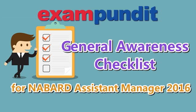 Hello and welcome to exampundit. Here is the General Awareness Checklist for NABARD Assistant Manager 2016 Prelims exam. We have also included a checklist on Economic and Social Issues and Rural and Agricultural Development.