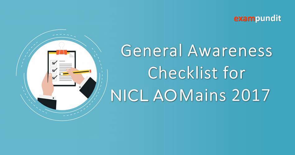 Hello and welcome to exampundit. Here is the much awaited General Awareness Checklist for NICL AO Mains 2017. This will cover almost everything in the General Awareness section.