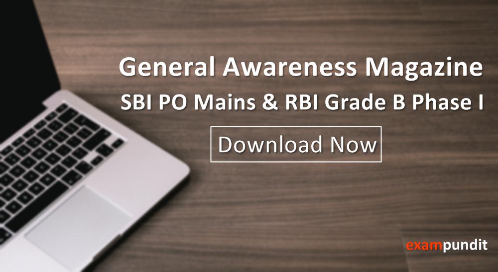 Hello and welcome to exampundit. Here is the much awaited General Awareness Magazine for SBI PO Mains & RBI Grade B Phase I 2017. The PDF contains all the current affairs along with Banking Awareness.