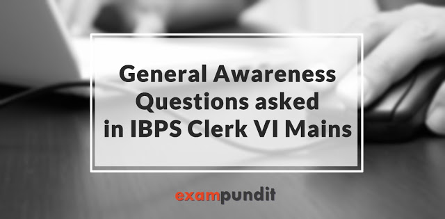 Hello and welcome to exampundit. So here are the General Awareness Questions asked in IBPS Clerk VI mains 1 January, 2017. A big thanks to our very own Ruchi for sharing all the questions!