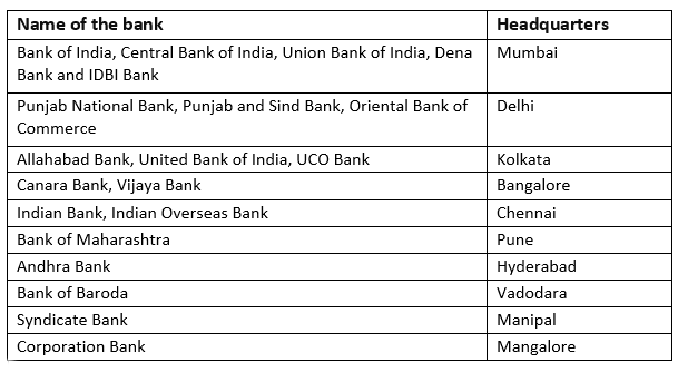 Bank, United Bank of India, Canara bank, Union Bank, Bank of India