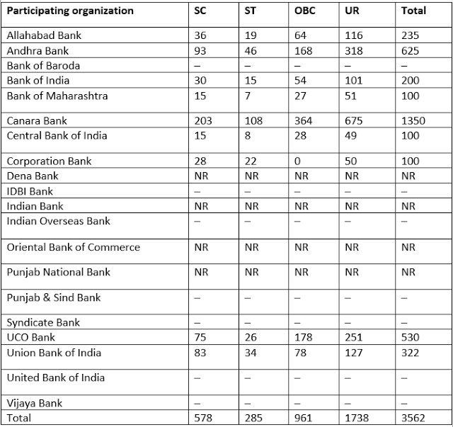 vacancies (NR) and the banks that have said they have no vacancies (NIL), could