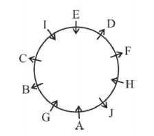 Ten friends A, B, C, D, E, F, G, H, I and J are sitting around a circle in such a way that five of them facing the centre while five of them facing outside from the centre, but not necessarily in the same order. A sits third to the right of F. I is not an immediate neighbour of B or F, but sits on the immediate right of C, who is not facing the centre. H and D are sitting on the immediate left and third to the left of J respectively. I sits fourth to the left of A. E sits on the immediate left of D and is not an immediate neighbour of C. A and E face the same direction. D and G sits opposite and also face opposite direction to each other. H and I face the same direction. Note : Facing the same direction means if one persons faces the centre then the other person also faces the centre and if one person faces outward then the other person also faces outward. Facing the opposite directions means if one persons faces the centre then the other person also faces outward and vice versa.
