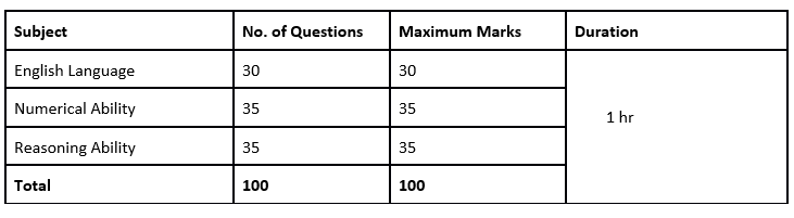 - Preliminary Exam consists of 3 sections- English Language, Numerical Ability and Reasoning Ability.