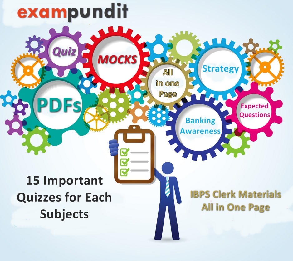 Hello and welcome to exampundit. Few days back our ep member Satya suggested us to provide all the important Quizzes, PDFs & Articles of IBPS Clerk VI Mains Exam in one page. So, here are the important Quizzes, PDFs & Articles for IBPS Clerk VI Mains.