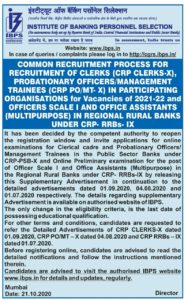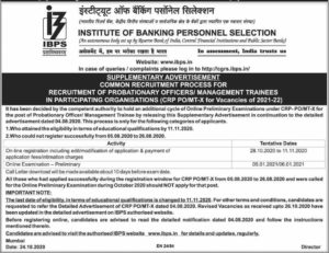 Dear Aspirants, IBPS has released Supplementary Advertisement for Recruitment of Probationary Officer/ Management Trainee (CRP PO/MT -X). Candidates can those who attained the eligibility in terms of educational qualifications by 11.11.2020 and Who could not register successfully from 05.08.2020 to 26.08.2020. The IBPS PO 2020 Online registration link open from 28.10.2020 to 11.11.2020.