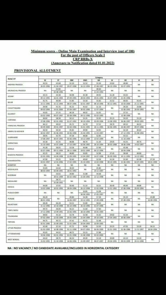 IBPS SO, PO, Clerk – X Provisional Allotment Result & Final Cutoff Marks for 2021