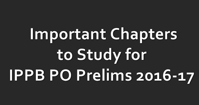 Hello and welcome to exampundit . Here are the Important Chapters to Study for IPPB PO Prelims 2016-17 which will be held on 7 and 8 January, 2017.