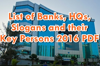 Hello and welcome to ExamPundit. Here is an Updated PDF on List of Banks (Both Public and Private), their Head (MD&CEOs), their headquarters and their Slogans. All the data are based on 1st February, 2016.