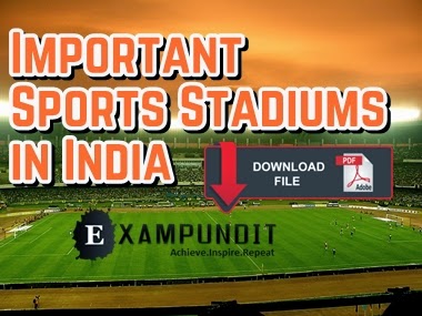 Hello and welcome to ExamPundit. As we have notice, questions from Sports Stadiums are coming these days. So here is a PDF containing all the Important Major Sports Stadiums in India 2015.