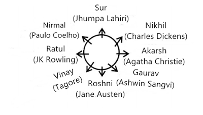 table facing away from the centre. Each of them likes a novel of a different