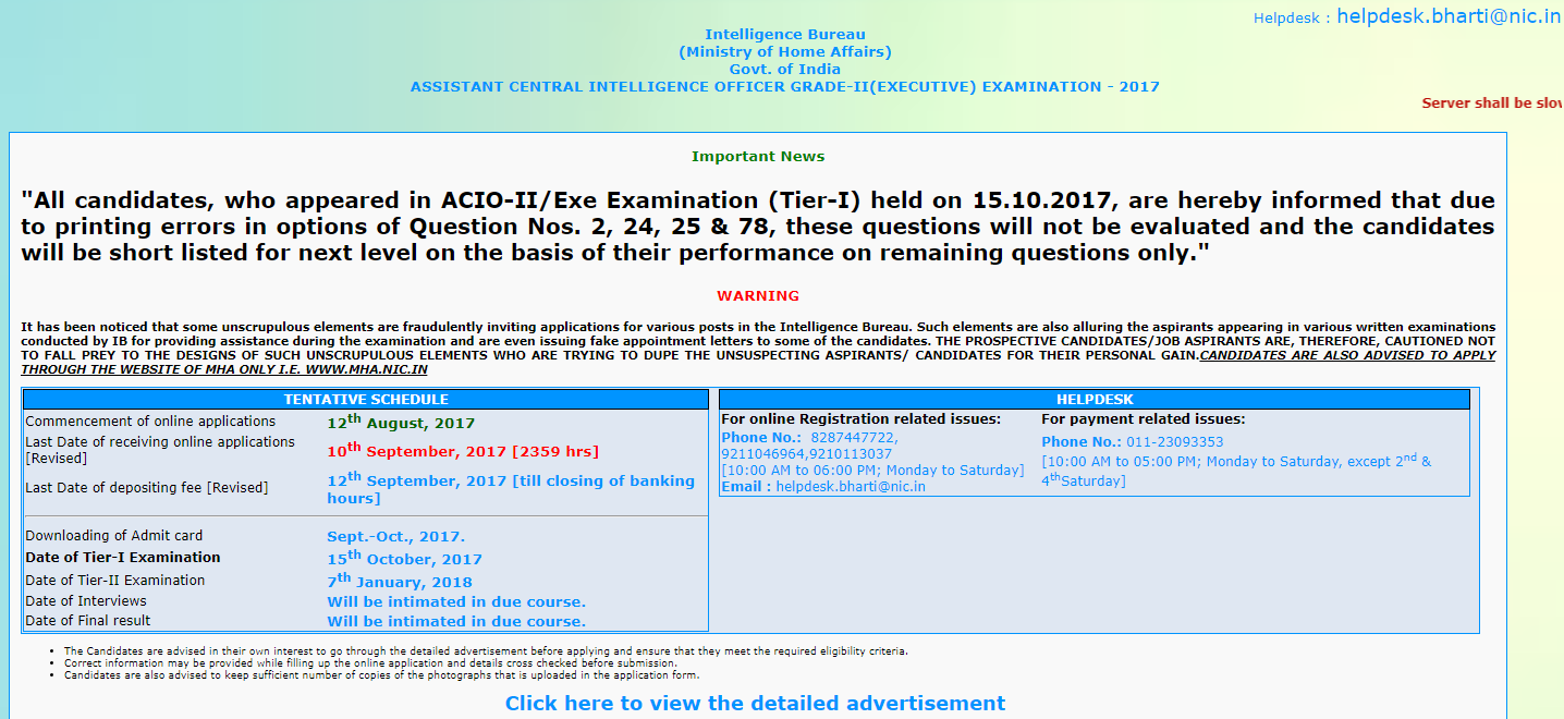 Hello and welcome to exampundit. Intelligence Bureau has finally broken the silence and they have clarified on the questions which had error.