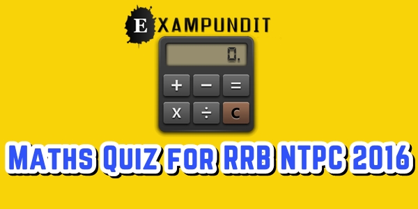 Hello and welcome to ExamPundit. Here is a set of Maths Quiz for RRB NTPC 2016.