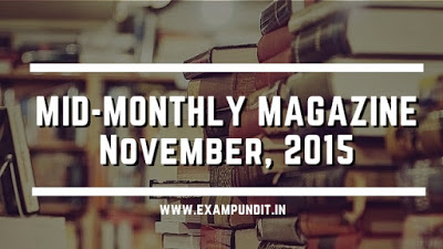 Hello and welcome to ExamPundit. Here is the Mid-Monthly Current Affairs Magazine of November, 2015. This magazine contains Current Affairs from 1st November to 16 November, 2015.
