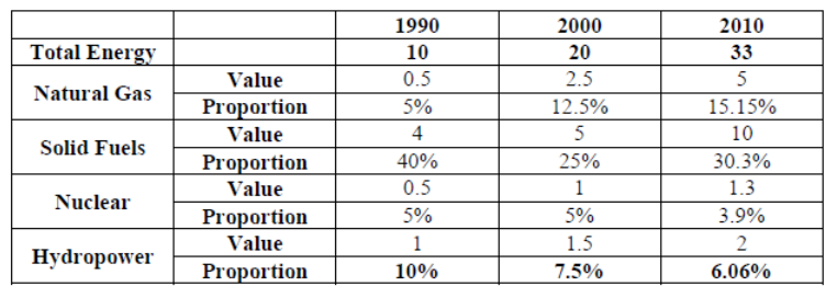 1. Over 1990 – 2010, which two fuels meet more than 60 percent of the total energy demand of both World