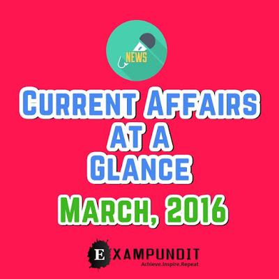 Hello and welcome to ExamPundit. Here is the monthly at a glance Current Affairs PDF of March, 2016. These are one-two liners Current Affairs which is beneficial for last moment studies.