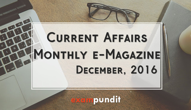 Hello and welcome to exampundit. Here is the monthly Current Affairs e-Magazine of December, 2016. These are important for RBI Assistant Mains, IPPB Mains Exam.