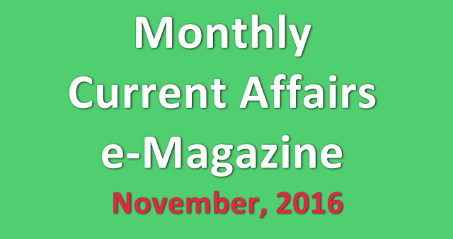 Hello and welcome to exampundit . So here is the monthly Current Affairs e-Magazine for the month of November, 2016. The magazine contains all the major financial news and non-financial news.