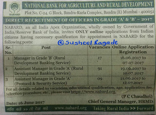 Hello and welcome to exampundit. After releasing the NABARD Grade B notification yesterday, NABARD is all set to release another notification of NABARD Grade A Assistant Manager 2017 Recruitment.