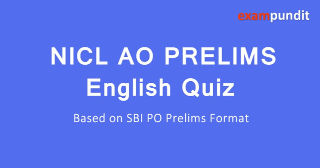 Hello and welcome to exampundit. Here is a set of English Quiz for NICL AO 2017 Prelims Exam based on SBI PO Prelims 2017.