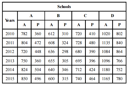 appeared and passed in Board exam from four schools A, B, C and D. (P = passed,