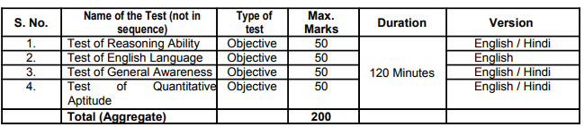 (i) Objective Test: The Objective Test of 2 hours duration consists of 4 sections (Generalists) and 5 sections (Specialists) for total 200 marks.