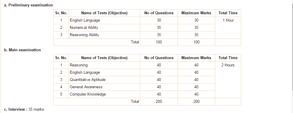 It has been decided by the Bank to revise the scheme of selection for recruitment of Assistant from the year 2016. Under the revised scheme of selection, there shall be two phase online examination i.e. Preliminary and Main examination followed by Interview. Candidates who shall qualify in Preliminary examination and shortlisted will have to appear for Main examination and shortlisted candidates in the Main examination will subsequently be called for Interview . The revised scheme of selection is as follows:-