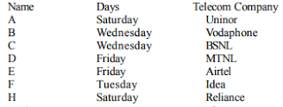 BSNL. C visits on Wednesday, H does not belong to Airtel. The person who