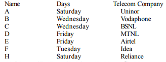 visits on the day Uninor's manager visits nor with E and H. F belongs to Idea