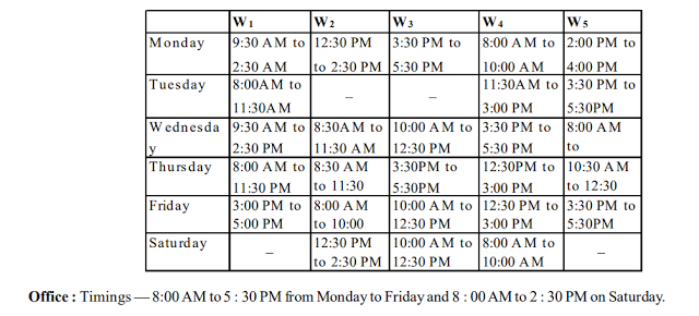 windows are named as W1, W2, W3, W4 and W5 respectively. Office hours are from