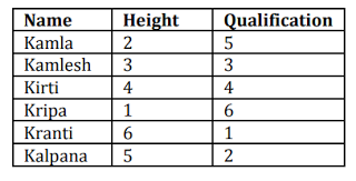 qualified than Kamlesh but is taller than Kamlesh. Kalpana is shorter than
