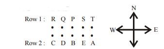 Ten people are sitting in two parallel rows containing five people each, in such a way that there is an equal distance between adjacent persons. In row 1, P, Q, R, S and T are seated and all of them are facing south. In row 2, A, B, C, D and E are seated and all of them are facing north. Therefore, in the given seating arrangement, each member seated in a row faces another member of the other row. D sits third to the left of A. P faces immediate neigbhour of D. R sits second to the right of P. Only one person sits between Q and S. B and E are immediate neighbours. E does not face P and Q.