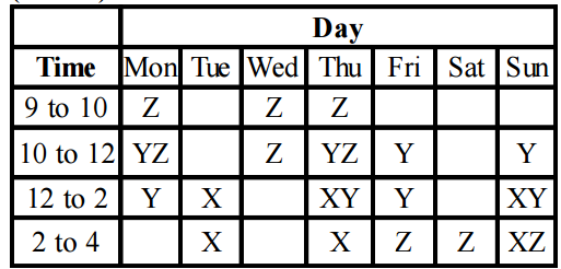on different days. X works in the office from 12 noon to 4 pm on Tuesday, Thursday