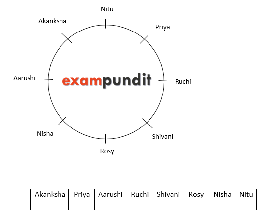 straight line sits opposite to Aarushi in the circle. Nisha and Shivani are the