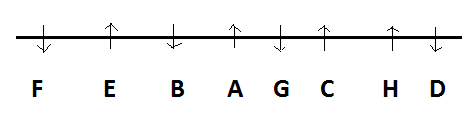 faces north. Neither B nor H stands at any of the extreme ends of the line.