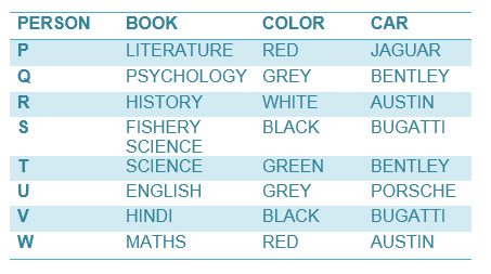 same color. The one who likes Psychology does not like Jaguar or Bugatti. T