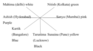 Q6. Who sits between the one who is from Kolkata and the one who likes Yellow color?