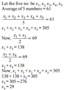 - Average of five numbers is 61. If the average of first and third number is 69 and the average of second and fourth number is 69, what is the fifth number? (SBI Clerk 2012)