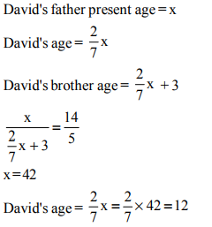 - David's present age is 2/7th of his father's present age. David's brother is three year older to James. The respective ratio between present ages of David father and David's brother is 14:5. What is the present age of David? (IBPS PO Mains 2016)