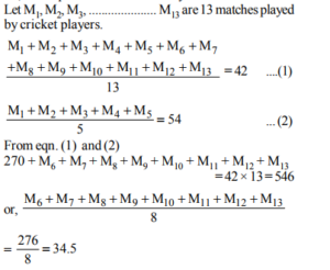 - The average score of a cricketer for 13 matches is 42 runs. If his average score for the first 5 matches is 54, then what is his average score (in runs) for last 8 matches? (IBPS Clerk 2013)