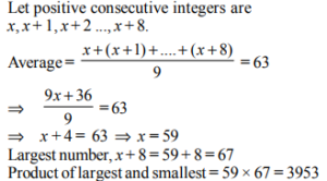 - The average of the 9 consecutive positive integers is 63. The product of the largest and smallest integers is (Indian Overseas PO 2013)
