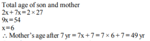 - The respective ratio between the present ages of son, mother, father and grandfather is 2 : 7 : 8 : 12. The average age of son and mother is 27 yr. What will be mother's age after 7 yr? (IBPS PO/MT 2013)
